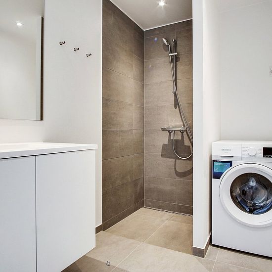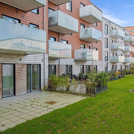 OBS: Det er et krav, at lejere på dette lejemål er 55+ år og uden hjemmeboende børn. Du træder ind i lejlighedens køkken-alrum, hvor der ved hoveddøren er et indbygget skab til overtøj. Køkkenet er placeret langs den ene væg, så du nemt kan indrette dig med både spiseområde og stue. Badeværelset har gulvvarme. Alt efter boligens størrelse er der ét eller to værelser. Depotrummet er placeret i kælderen. Alle lejligheder har enten altan eller terrasse. Hårde hvidevarer Der er alt i hårde hvidevarer fra Siemens inklusive opvaskemaskine. På b...