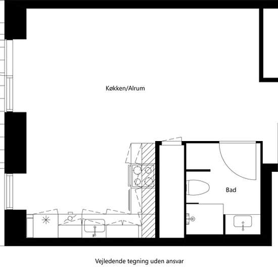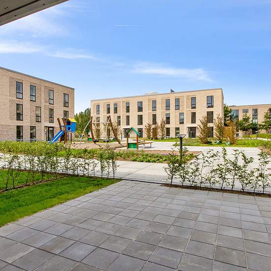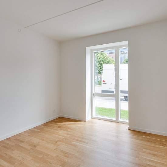 Lys og skøn lejlighed med stor terrasse Denne moderne lejlighed byder på en privat terrasse, som ligger i åben forbindelse med det lyse køkkenalrum. Køkkenet er udstyret med både køle/frys, opvaskemaskine, indbygningsovn, kogeunit og emhætte. Soveværelset har en god størrelse og er etableret med indbyggede skabe. Badeværelset er også moderne og etableret med både vaskemaskine og tørretumbler. Derudover indeholder lejligheden et praktisk depotrum. I det hyggelige grønne gårdmiljø med træer og fin beplantning finder du en god, stor legeplads ...