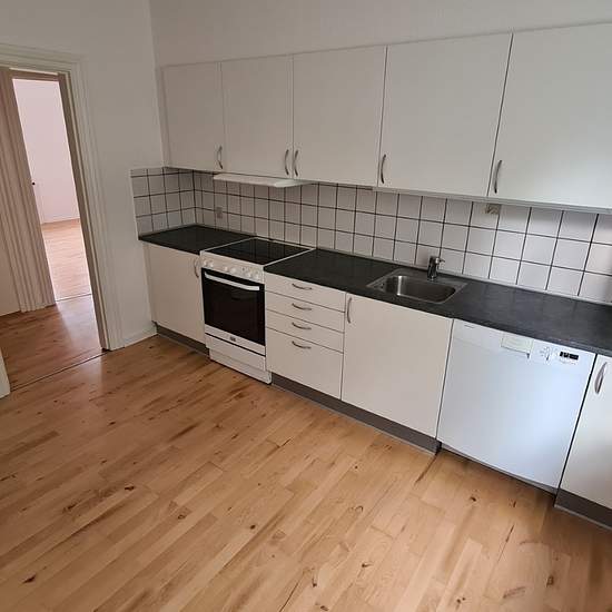 Lækker 2 værelses i centrum Renoveret lejlighed med lakerede bøgeparketgulve overalt i lejligheden. Nyt hvidlakeret køkken med lille spiseplads, opvaskemaskine samt keramisk komfur. Badeværelse med gulvvarme samt glasskillevæg til bruseniche. Soveværelse med god skabsplads. Ejendommen, som er opført i 1917 og løbende moderniseret, er beliggende tæt på centrum. Ejendommen består af 15 lejligheder. I kælderen er der fælles vaskeri og tørrerum. Til hver lejlighed er der ligeledes et pulterrum. Tilhørende ejendommen er der en velholdt solgård s...