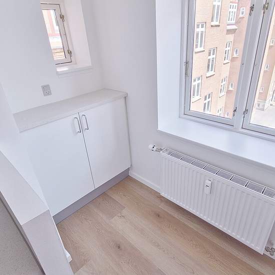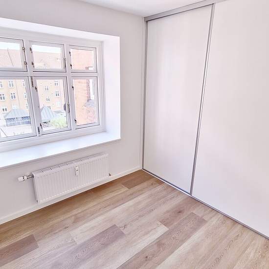 Lækker nyrenoveret 2 værelses i centrum med alt i hvidevare Super flot, åben og lys, totalrenoveret lejlighed i rolig ejendom med slidstærke laminat gulve i hele lejligheden. Dejligt soveværelse med store skydedørsskabe, med hylder og bøjlestænger. Lyst og flot køkken med hvidt køkkeninventar, stort køle/frys, glaskeramisk komfur, opvaskemaskine og lille spiseplads. Stor lys stue med fiberopkobling. Badeværelse med hvide fliser, gulvvarme, hvid vask og skabselementer, rummelig bruseniche, vaskemaskine og tørretumbler. Lejligheden har dørtel...