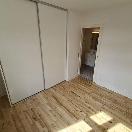 Lækker 2 værelses i centrum med parkering Super flot og lys, totalrenoveret lejlighed med lakerede askeparketgulve overalt i lejligheden. Dejligt soveværelse med stort indbygget skabe. Lyst køkken med hvidt køkkeninventar, opvaskemaskine, stort kølefryseskab og lille spiseplads. Badeværelse med gulvvarme, hvide skabselementer og med vaskemaskine og tørretumbler. Husdyr ikke tilladt. Ejendommen, som er opført i 1920 og løbende moderniseret, er beliggende i Vejle Vestby nær centrum. Ejendommen er en del af en boligkarré bestående af 143 lejli...