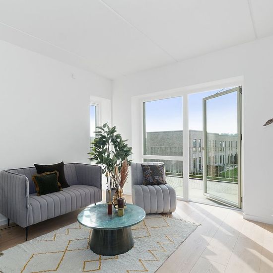 Lækker lejlighed fra 2020 på 93 m2, 2 rum og med stor altan udlejes i det nordøstlige Vejle tæt på skole, børnehave, legeplads, busstoppested, indkøb, fitness og natur. Du har kun 3 km til Vejle centrum og 5 minutters kørsel til motorvej E45. Boligen er lys, moderne og indrettet i tidsløse, slidstærke og rengøringsvenlige materialer. Herunder alt i hårde hvidevarer, ventilationsanlæg og gulvvarme. Boligen er energivenlig, godt isoleret og holder på varmen. Der opvarmes via fjernvarme. Køkken og stue i ét det naturlige samlingspunkt med plads...