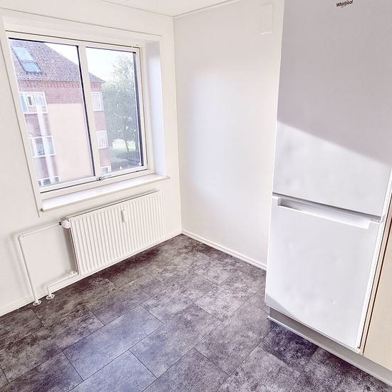 Hyggelig 2-værelses med parkering i midtbyen Dejlig lys og flot lejlighed med lakerede bøgeparketgulve i entre, stue og værelse. Stor entre med indbyggede skabe og stort lyst køkken med spiseplads og køkkeninventar i bøg. Stort badeværelse med hvidpigmenteret bøg skabselementer, hvide fliser på vægge. Soveværelse med god skabsplads. Husdyr ikke tilladt. Ejendommen, som er opført i 1940 og løbende moderniseret, er beliggende i Vejle Vestby nær centrum. Ejendommen består af 35 lejligheder. I kælderen er der fælles vaskeri, tørrerum og cykelru...