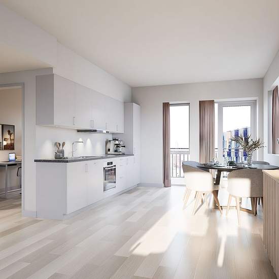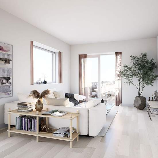 Denne imponerende 2-værelses lejlighed på hele 95 m² ligger på 1. sal og byder på usædvanligt god plads, store åbne rum og en sydvendt altan, der giver boligen et naturligt flow mellem inde og ude. Her får du en moderne bolig med masser af luft, brede gangarealer og en gennemført logik i indretningen. Boligen åbner ind til en generøs entré, som giver et indbydende førstehåndsindtryk og masser af plads til opbevaring. Herfra træder du videre ind i den lange og brede gang, der binder boligens rum elegant sammen. Hjemmets hjerte er det store kø...