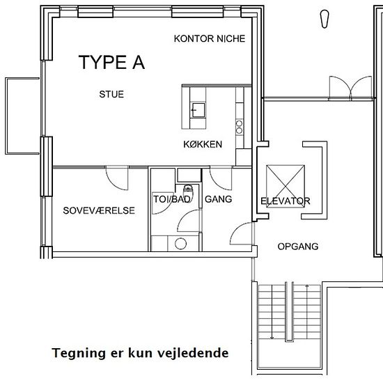 Flot 2-værelses lejlighed med altan. Lejligheden indeholder entré samt lyst opholdsrum, hvor stue og køkken er i åben forbindelse. Køkkenet er udstyret med integreret køle-/fryseskab, opvaskemaskine, ovn, kogeplader og emhætte. Soveværelset har faste skabe med gode opbevaringsmuligheder. Der er parketgulve i stue, køkken og soveværelse, mens entré og badeværelse er med fliser. Badeværelset er indrettet med bruseniche og vaskemaskine. Ejendommen har elevator og dørtelefon, og der er mulighed for parkering i p-kælder