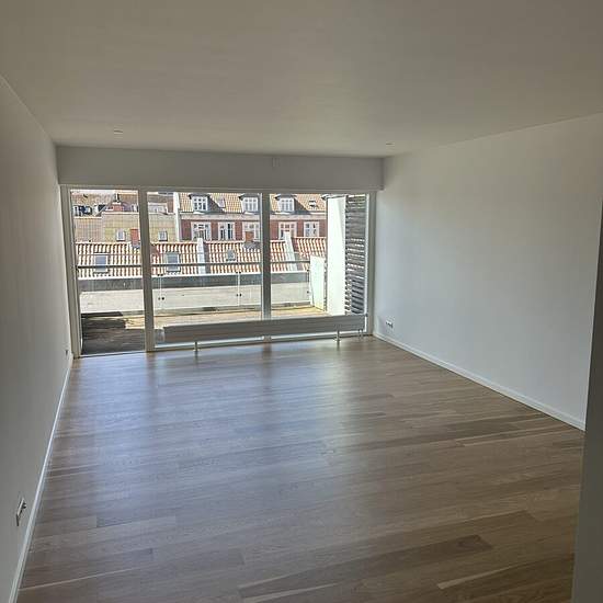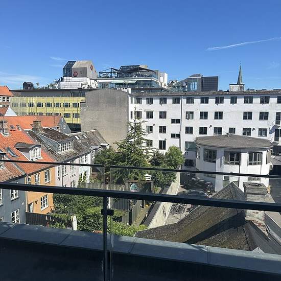 Ønsker du/I at bo i Centrum af Aarhus, så er muligheden her - centralt, men alligevel roligt. Tæt ved alle byens faciliteter som Strøget, bus og tog, Streetfood og m.m. Du/I får her en skøn og lys lejlighed med stor entré, stort brusebadeværelse med plads til vaskemaskine og tørretumbler. Soveværelse med klædeskabe. Køkken i åben forbindelse med opholdsrum, hvorfra der er adgang til altan med en dejlig udsigt. Tillige trappe med opgang til repos velegnet til fx. kontor, lille opholdsgruppe eller. lign. Adgang til meget anvendeligt disp. rum ...