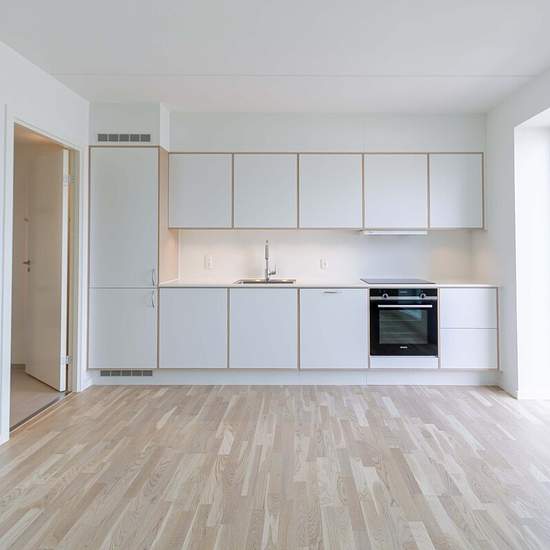Lejemålet I denne skønne 2-værelses lejlighed er stuen og det stilrene køkken fra Invita samlet i ét lyst køkken-alrum med direkte udgang til altan. Her kan du nyde morgen- eller eftermiddagskaffen med udsigt til Hillerøds nye bydel, Frederiksbro. Soveværelset er rummeligt og har faste skabe samt et depotrum. Lejligheden er udstyret med hårde hvidevarer fra Siemens, herunder vaskesøjle, og der er gulvvarme i alle rum. Ejendommen Blåbærhaven er en karrébygning på 6 etager med i alt 76 skønne lejligheder. Boligerne er mellem 46 og 119 m2 og ...