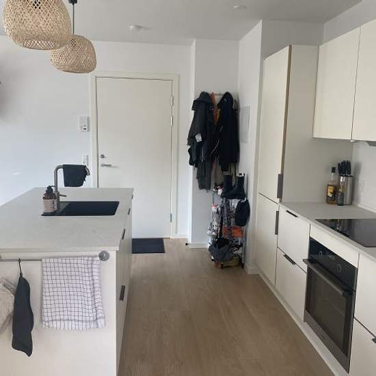 I den tidligere skole, opført i 1896, leder den bevarede opgang dig ind i nyopførte lejligheder, i hjertet af Esbjerg. Her vil du opleve at være tæt på alt fra indkøbsmuligheder, til offentlig transport, til kulturtilbud og alt andet Danmarks 5. største by ellers kan byde på! Den hyggelige og charmerende lejlighed på 2. sal, er udstyret med indbygningsovn, induktionskogeplade, integreret opvaskemaskine samt integreret køle-/fryseskab. Endvidere er den opført med slidstærkt gulv, lyse vægge, klargjort til vaskesøjle (vaskemaskine + tørretumb...