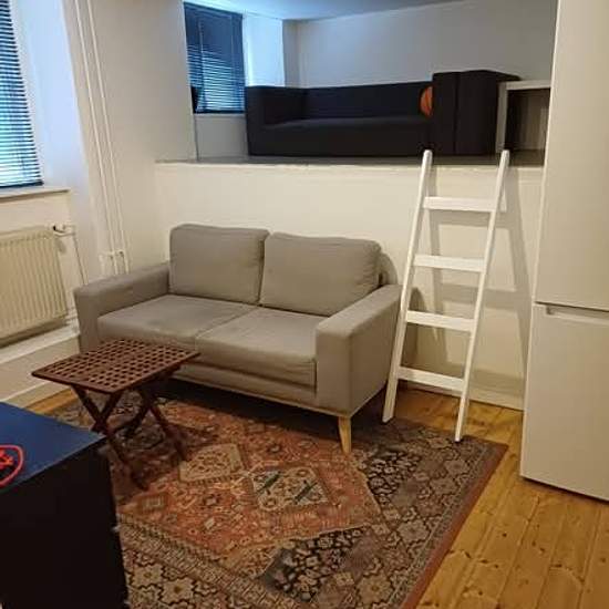 A furnished room of approximately 25 square meters is for rent on store Kongensgade kbh K. It is a short-term rental from February 15 to March 25. The rent is 3000 DKK, all inclusive with internet access. A deposit of 3000 DKK is required, which is returned when the keys are returned.
