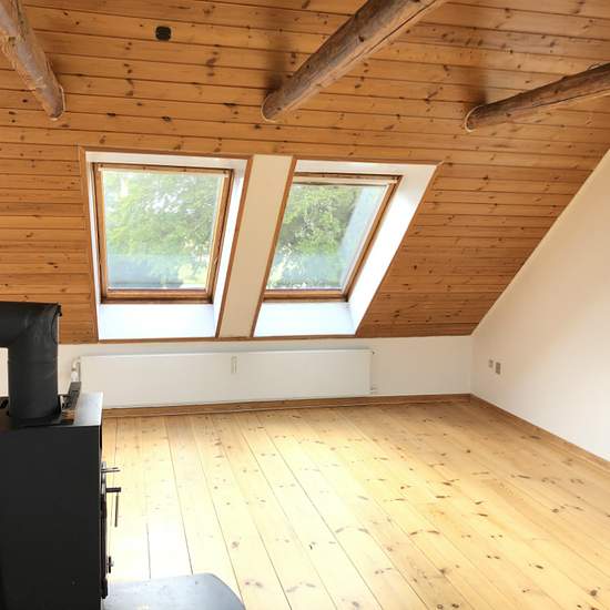 Pæn og charmerende stor lejlighed på ca. 115 kvm indeholdende stor entre i stueplan, stue m/brændeovn direkte i forbindelse med nyere åbent køkken, 3 pæne værelser samt pænt badeværelse. Der er mulighed for at lave et yderligere mindre værelse. Alle rum går i kip med frie hanebånd/spær. Lille vaske niche med mulighed for tilslutning af vaskemaskine og tørretumbler. Trægulve. Egen have som passes af lejer. Parkerings mulighed bag ejendommen.   Opvarmning: Oliefyr med varmemålere på alle radiatorer.   Elforbrug: Egen måler.   Vandforbrug: Belø...