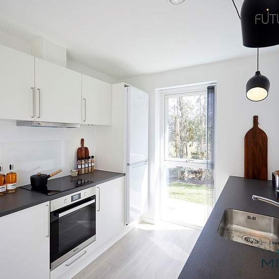 Her får du et yderst velindrettet rækkehus, hvor alle kvadratmeter er udnyttet. Huset er indrettet med entre/bryggers med videre adgang til badeværelse, stort køkken alrum og stue i ét, soveværelse med tre faste skabe samt værelse. Fra alrum og stue er udgang til husets have samt to terrasser på hver sin side af huset. Ydermere er eget redskabsskur samt indkørsel. Have: Egen have og terrasse Udhuse: Redskabsrum 7m² Parkering: 2 P-pladser ved bolig Al forbrug afregnes direkte til forsyningsselskaberne Rækkehuse med fine detaljer Husene er u...