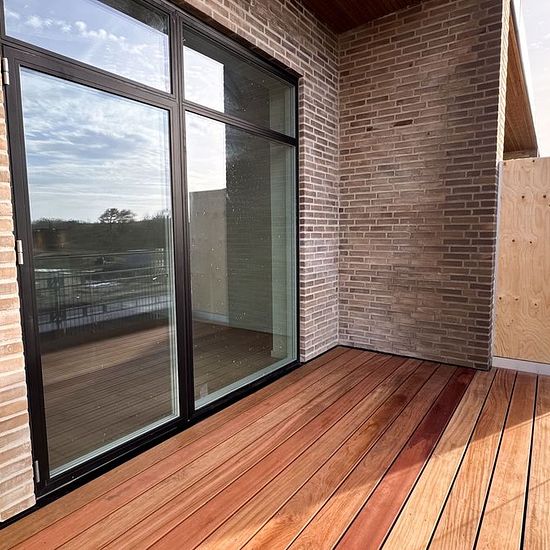 I det attraktive område Engen ved Billund finder du 44 lyse og moderne lejeboliger med 2-5 værelser. Boligerne er opført med fokus på funktionalitet, lyse-rammer og kvalitetsmaterialer. Boligerne er fordelt på to plan med vandret skel, en løsning hvor én bolig ligger i stueplan og én på første sal. Alle boliger har enten en privat terrasse med have (stueplan) eller en rummelig tagterrasse (1. sal). I dette rækkehus får du bl.a.: *En moderne bolig i energiklasse A2015 *Gennemtænkte planløsninger og god opbevaringsplads *Gulvvarme i alle rum...