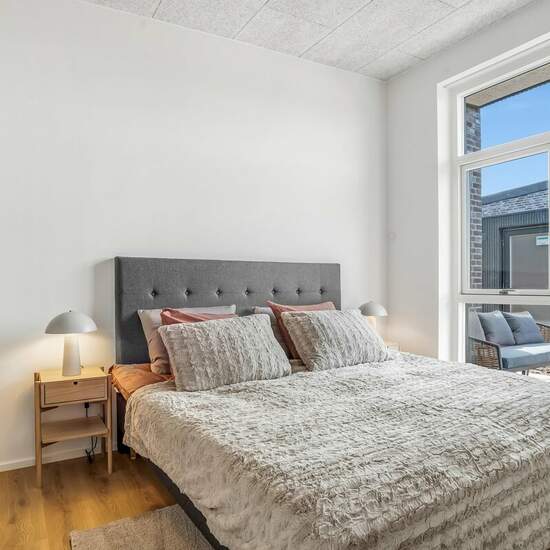 Velkommen til Seniorboligfællesskabet Kronhjorten – til dig på 55+ år og uden hjemmeboende børn Vi er glade for at præsentere en indbydende 3-værelses lejebolig på 90-93 kvm, perfekt beliggende i charmerende klynger af fire moderne boliger i Halgaard Enge. Boligen er skabt med tanke på komfort og funktionalitet. Her er alt, hvad du behøver for en behagelig og bekvem hverdag. Indretningen af boligen er gennemtænkt og funktionel med overdækket fliseområde foran hoveddøren. Herfra kommer du ind i et rummeligt bryggers som inkluderer en praktis...