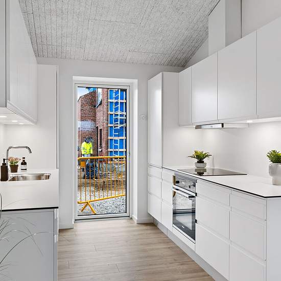 Moderne, lyst og smagfuldt rækkehus i Lejre Degnejorden – en moderne landsby med fællesskaber som omdrejningspunkt. Nyt byggeri skyder op af jorden i Lejre. Landskabet imellem boligklyngerne på Degnejorden, er tænkt som et naturområde med varieret beplantning i form af forskellige træer og buske på en bund af enggræsser og urter. Igennem naturområdet etableres der trampestier og mindre opholds- og aktivitetsområder. 82 lejeboliger fordelt på 3 forskellige boligtyper i ét eller 2 plan. Udover lejeboligerne bliver der frasolgt 13 huse. I o...