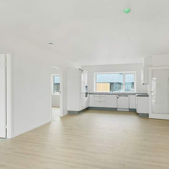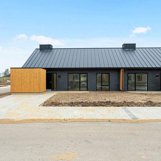 Rækkehuse fra 2025 i Lunderskov tæt ved Dollerup Sø I naturskønne omgivelser finder du 36 rækkehuse i ét plan. Alle rækkehuse har egen have med terrasse og eget skur, og så er der en parkeringsplads lige ved hver bolig. Facaderne er beklædt med tegl i grå nuancer og boligerne er opvarmet via gulvvarme med fjernvarme som varmekilde. Der er i boligerne foruden værelser et stort, lyst og lækkert køkken/alrum i direkte forbindelse med stuen og så er der et stort badeværelse og bryggers. Der er installeret emhætte, kogeplade, ovn, opvaskemaskine ...