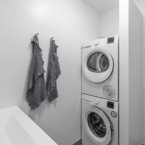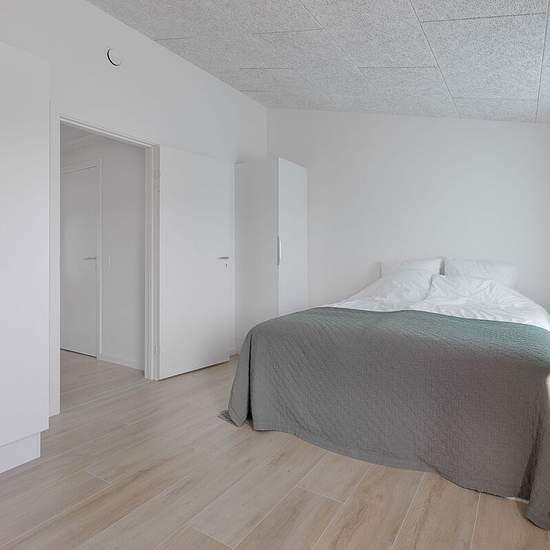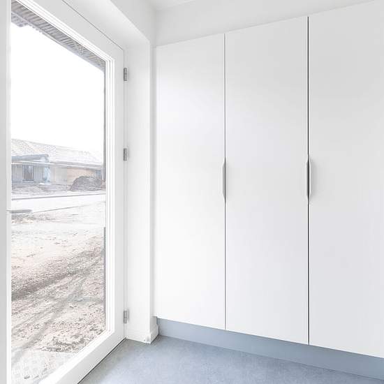 Moderne 2-plans rækkehus med adskilt privat- og opholdszone I denne velindrettede 2-plans bolig får du en planløsning, der elegant adskiller hverdagens fællesrum fra de private værelser. Når du træder ind, mødes du af en praktisk entré med opbevaringsmuligheder og adgang til et gæstetoilet. Herfra fortsætter du ind i det lyse køkken-alrum og stue, hvor der er god plads til både spisebord og sofa. Køkkenet er udstyret med hvide HTH-elementer og alle hårde hvidevarer, og den store glasdør giver direkte adgang til terrassen og det grønne uderu...