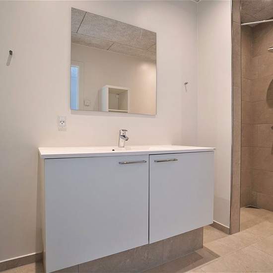 3-værelses Tvillingehus på 81 m² i Middelfart Tobisvænget 64, 5500 Middelfart Tobisvænget - Lejemålsnr. 9-612-32 Velkommen på Tobisvænget, hvor du får en dejlig et-plans bolig : Rummelig entre/ bryggers med plads til vaskesøjle Bad med lyse klinker og brus To gode værelser med skab Åbent køkken med hvide elementer af mærket Designa Adgang til egen have og terrasse Gulvvarme og i hele boligen, monteret med ventilationsanlæg Carport med integreret redskabsskur Egen indkørsel Lejevilkår: Det er tilladt at holde 1 stk. hund på max 35 kg eller un...