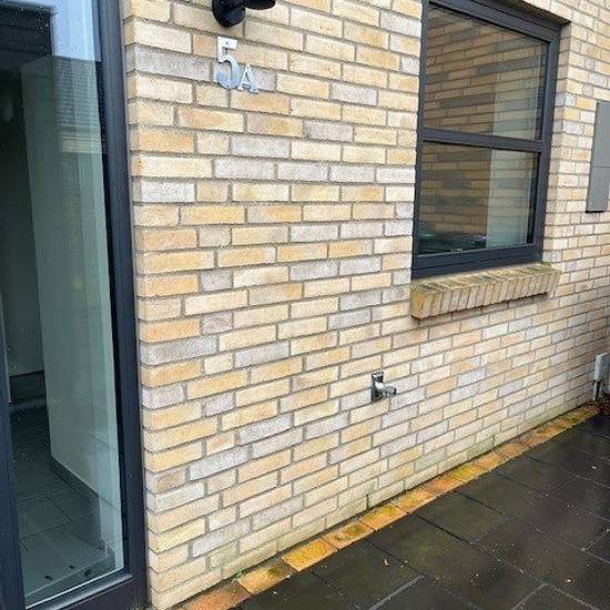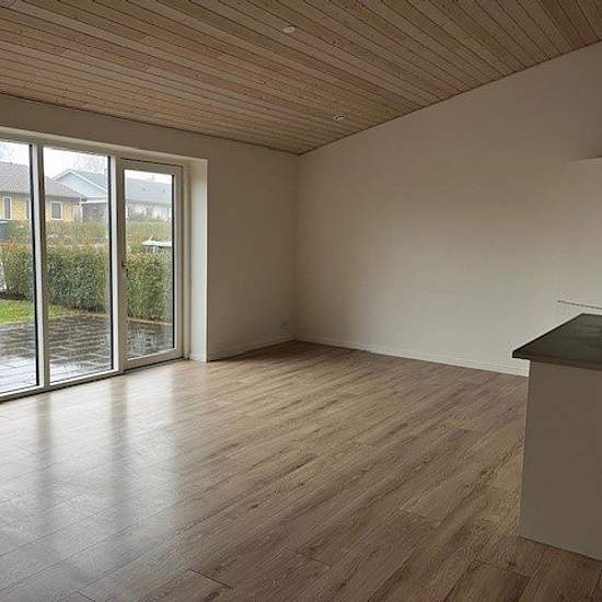 120 kvm. Lækkert rækkehus opført i 2017. Bryggers med vaskemaskine og tørretumbler. 2 børneværelser med indbyggede skabe. Soveværelse med indbygget skab. Badeværelse med brusekabine. Stort køkken alrum/stue med indbygget køle/fryseskab, indbygningsovn, kogeplade og emhætte. Fin lille lukket have. Eget skur og overdækket til cykler mm. Fælles parkeringsplads (med de 5 andre enheder) lige ved døren. Indskud 30.570 kr