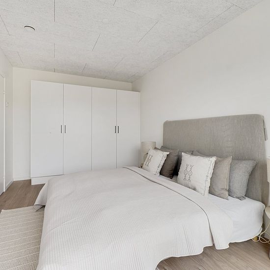 Rækkehusene er indrettet med 3-4 rummelige værelser, hvor der er plads til både gæster og overnattende børn eller børnebørn. Alle boliger får et dejligt køkken-alrum i åben forbindelse med stuen, samt to eller tre tilstødende værelser. Boligerne får alle egen terrasse. Hårde hvidevarer Der er gulvvarme i alle boligens rum. I køkkenet findes alt i hårde hvidevarer, og på badeværelset både vaskemaskine og tørretumbler. Husdyr Lejere kan ansøge om tilladelse til at holde én indekat eller hund på adressen. Udekatte er ikke tilladt. Du skal al...