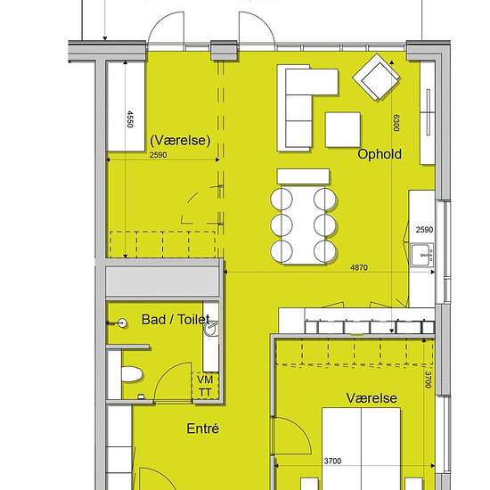 Lejligheden som er en 3 værelses indeholdende: Stor entre, køkken (Invita design) i åbenforbindelse med stue hvor der ligeledes er adgang til den unikke altan, badeværelse med bruseniche samt 2 gode soveværelser. Der medfølger endvidere mindre depotrum til lejligheden. De udvendige arealer såsom adgangsveje, parkeringspladser samt det interne fortov langs terrassehusene er udført i niveau af hensyn til gangbesværede og kørestolsbrugere. Husdyr tillades efter særskilt aftale med udlejer.