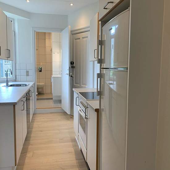 På attraktive Prinsensgade få minutters gang til Vesterbro og hovedbanegården samt busterminalen finder I denne skønne delelejlighed. Fra adressen får I blot få minutters gang til diverse indkøbsmuligheder grønne områder, Aalborg Havnefront, transport, shopping med mere. Lejlighedens køkken er lyst med køle-fryseskab og masser af skabsplads. Badeværelset er ligeledes dejligt lyst. I lejlighedens 3 værelser er der masser af lys som strømmer ind fra værelsernes store vinduespartier. Fra det ene værelse får I ydermere adgang til lejlighedens h...