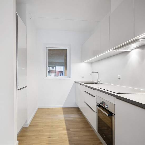 Velkommen til denne lejlighed hvor lys møder kvalitet. En indflytningsklar bolig med en behagelig atmosfære. Når du træder ind i denne skønne 3-værelses lejlighed på 84 m², bliver du straks mødt af en lys og rummelig stue. Det store vinduesparti med skydedør åbner op til den generøse altan, hvor du kan nyde morgenkaffen under åben himmel. Stuen er i åben forbindelse med det moderne Invita køkken, der er udstyret med alt i hårde hvidevarer, hvilket gør madlavningen til en fornøjelse. Lejligheden har to velindrettede soveværelser, begge med g...