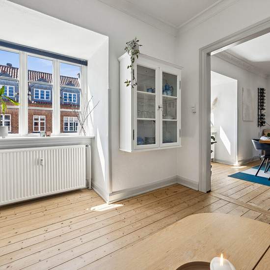 I den attraktive og veldrevne ejerforening Østerport udbydes denne lyse og velindrettede 3-værelses lejlighed på 75 m². Boligen byder på en funktionel planløsning, klassiske detaljer og et behageligt lysindfald, der tilsammen skaber en indbydende atmosfære. Lejligheden indeholder et pænt køkken med god skabs- og bordplads samt et nydeligt badeværelse – begge i en stand, der gør det muligt at flytte direkte ind. Der er desuden installeret vaskemaskine i boligen, hvilket bidrager til en praktisk hverdag. De to stuer ligger ensuite og har et ...