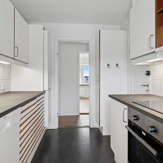 Velkommen til denne lejlighed hvor lys møder livlig beliggenhed. En indflytningsklar bolig med en behagelig atmosfære. Den rummelige lejlighed på 108 kvadratmeter byder på store vinduespartier, der skaber en lys og indbydende stemning i stuerne og soveværelset. Med direkte adgang til den store sydvendte altan fra både køkken og soveværelse, bliver indendørs og udendørs liv perfekt forenet. Lejligheden indeholder desuden et lyst badeværelse med gulvvarme og et separat toilet, begge med praktiske opbevaringsmuligheder. Ejendommen Her får du ...