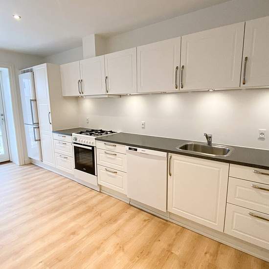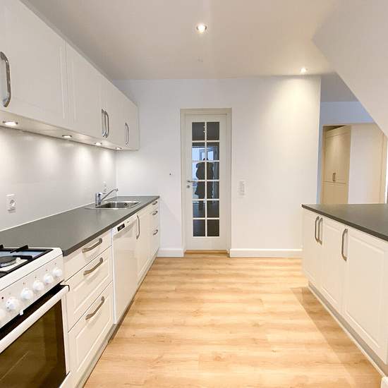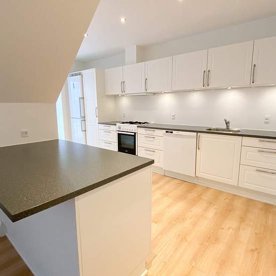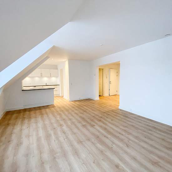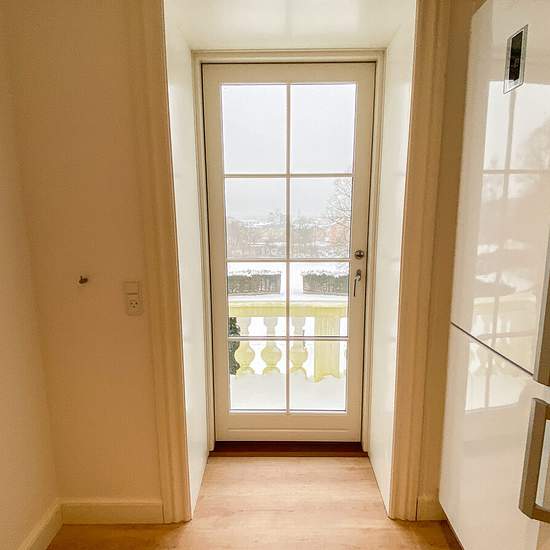 Lejligheden ligger højt og lyst på anden sal og byder på både ro og fred midt i byen samt en smuk udsigt til himlen og trækroner, der skifter med årstiderne. Lyset spiller en central rolle i hele boligen og fremhæver det lyse inventar på smukkeste vis. De hvide vægge og de pæne gulve skaber en tidløs ramme for hverdagen, som særligt udfolder sig i det store køkken-alrum. Her kan I samles til middage, lave mad sammen og nyde aftensolen gennem de dobbelte terrassedøre, der åbner ud til en vestvendt altan. Det store soveværelse har også adgang...