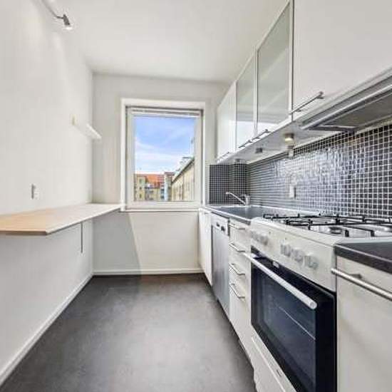 **Dejlig 3-værelses lejlighed i Øgadekvarteret, Aalborg** **Vendsysselgade 12, 1. tv., 9000 Aalborg** **75 m² – 2 værelser + stue** **Husleje: 6.395 kr./md.** **Aconto: 900 kr.** **Ledig nu – ubegrænset lejeperiode** På en god beliggenhed i det populære **Øgadekvarter** finder du denne skønne 3-værelses lejlighed med en rummelig og gennemtænkt planløsning samt flot lysindfald. **Boligen byder bl.a. på:** Rummeligt køkken med god skabsplads To lyse værelser med masser af naturligt lys Flotte, gennemgående trægulve Fælles vask...
