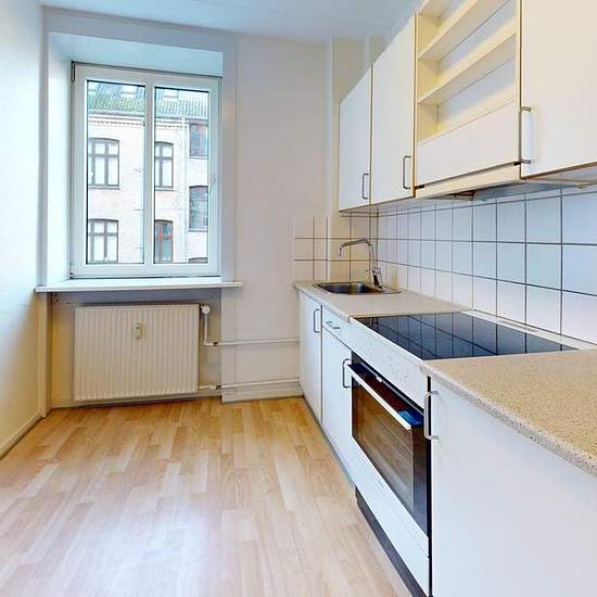 Velkommen til denne rummelige og lyse 3-værelses lejlighed på hele 96 m², perfekt beliggende midt i Aalborg Centrum. Lejligheden byder på en funktionel planløsning med god plads i alle rum. Køkkenet er lyst og velholdt med masser af skabsplads, en pæn bordplade og alle nødvendige hårde hvidevarer. Her er der plads til både madlavning og hverdagens praktiske gøremål. De to værelser er af en rigtig god størrelse og egner sig både til soveværelse, kontor eller gæsteværelse. Stuen er rummelig med flotte lysindfald og gode indretningsmuligheder...