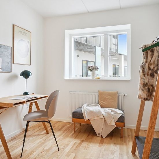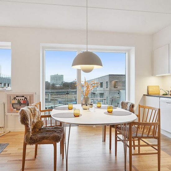 Nye lejeboliger på Godsbanearealet Attraktivt bymiljø midt i Aalborg BOLIGERNE Lyse boliger i nordisk stil med attraktiv beliggenhed midt i byen Godsbanen byder på tre attraktive boligejendomme med perfekt placering i det nye urbane bymiljø på godsbanearealet i midten af Aalborg. Første etape består af 77 lejeboliger indrettet i nordisk stil med hvidmalede betonvægge og flotte trægulve, så du nemt kan indrette boligen i din egen personlige stil. Uanset størrelsen er hjertet i boligen det store køkkenalrum og stue i ét, der har et fantas...
