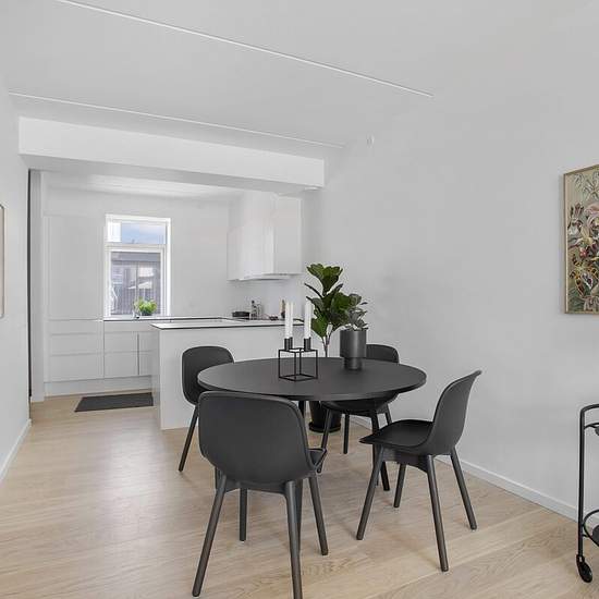 Alle rækkehusene i Sofiendalen er indrettet med store køkken/alrum, som er bygget i forbindelse med stuen. Tilsammen danner det store åbne rum rammen for et hyggeligt fællesskab og liv. I midten af Sofiendalen finder du rækkehusene, som har udsigt til de skønne grønne fællesarealer. Rækkehusene har en mørk teglbase, som bliver komplimenteret af en elegant aluminiumskasse, som giver byggeriet en lethed og et spændende spil i facaden. Der er højt til loftet i alle boligerne, hvilket giver plads til stilrene høje vinduer, som giver et dejligt n...