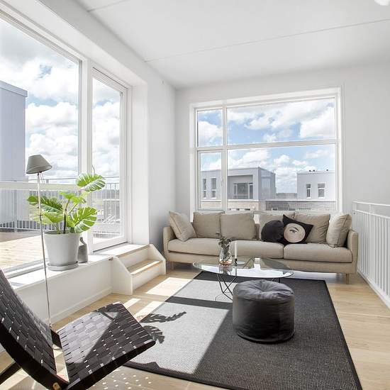 Alle rækkehusene i Sofiendalen er indrettet med store køkken/alrum, som er bygget i forbindelse med stuen. Tilsammen danner det store åbne rum rammen for et hyggeligt fællesskab og liv. I midten af Sofiendalen finder du rækkehusene, som har udsigt til de skønne grønne fællesarealer. Rækkehusene har en mørk teglbase, som bliver komplimenteret af en elegant aluminiumskasse, som giver byggeriet en lethed og et spændende spil i facaden. Der er højt til loftet i alle boligerne, hvilket giver plads til stilrene høje vinduer, som giver et dejligt n...