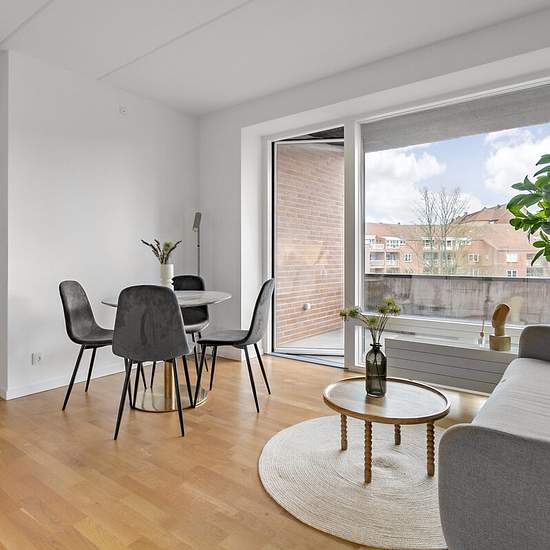 Nyere lejlighed med egen stor altan. Lækkert køkken med opvaskemaskine, køle/fryseskab, glaskeramisk kogeplade, ovn og emhætte. I badeværelset er der bruseniche og vaskesøjle med vaskemaskine og tørretumbler. Der er installeret WIFI og kabel TV fra Yousee (der skal tegnes abonnement) Lejligheden har eget opbevaringsrum i kælderen. Der er elevator i ejendommen. Mulighed for leje af egen parkeringsplads i aflåst kælder.