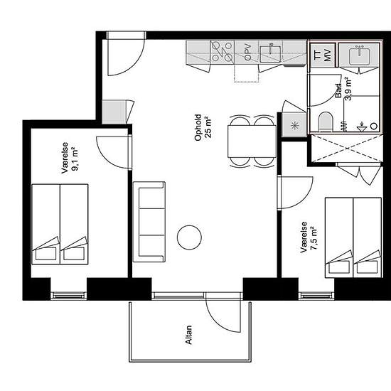 - 3 værelser