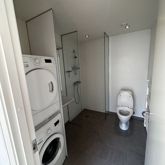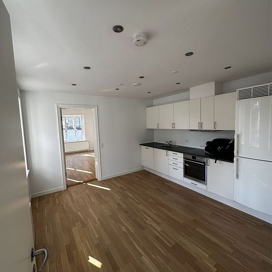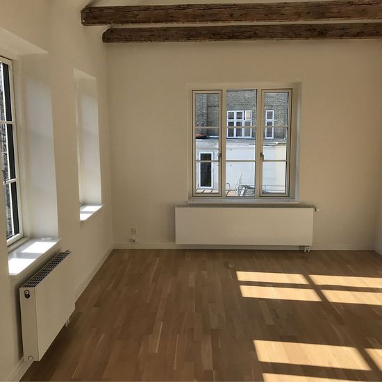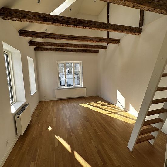 Delevenlig lejlighed med fælles tagterrasse i Aarhus C Meget attraktiv lejlighed i Ryesgade i hjertet af Aarhus C med adgang til stor, fælles tagterrasse. Lejligheden byder på flotte, fritliggende bjælker og en indretning, der gør den perfekt som delebolig. En charmerende bolig med både byliv og ro.