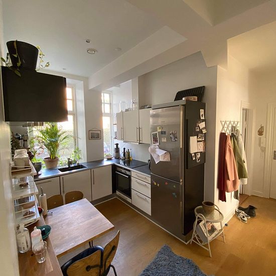Stor og flot lejligheden i hjertet af Aarhus I denne meget charmerende lejlighed er der højt til loftet, smukke stukdetaljer og flotte trægulve. Køkkenet er i åben forbindelse med lejlighedens fordelingsgang, og det er derfor lyst og rummeligt. Køkkenet er derudover veludstyret med både opvaskemaskine, kølefryseskab, keramisk kogezone og ovn. Lejligheden byder på tre gode værelser, hvoraf to værelser er store med charmerende vinduer, der giver et godt lysindfald. Det tredje værelse er mindre og kan benyttes som for eksempel børneværelse el...