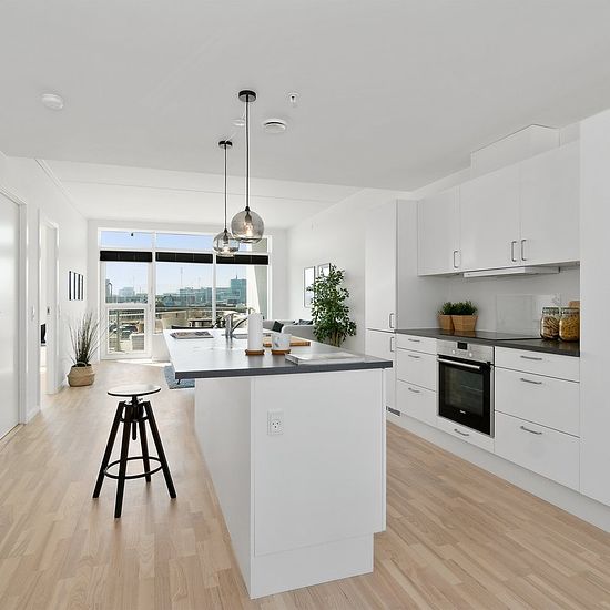 Moderne og indbydende boliger ved vandet – Havneholmen, Aarhus Ø På Havneholmen bor du moderne, lyst og komfortabelt – lige ud til vandet i hjertet af Aarhus Ø. Her finder du lejligheder med 2, 3, 4 eller 5 værelser, alle med enten terrasse i stueplan eller altan fra første sal og op. Alle opgange har elevator direkte fra p-kælderen og op til lejlighederne – praktisk og bekvemt i hverdagen. Boligerne er indrettet med åbent opholdsrum, hvor køkken, spiseplads og stue er integreret i ét lyst og luftigt rum. De store vinduer skaber et skønt ...