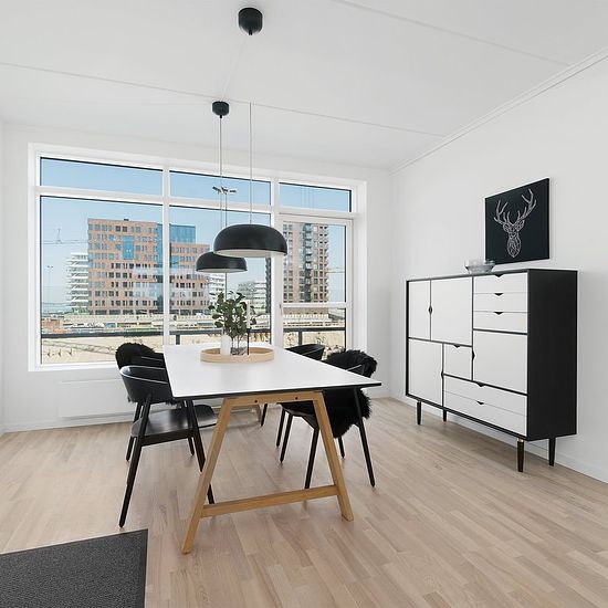 Moderne og indbydende boliger ved vandet – Havneholmen, Aarhus Ø På Havneholmen bor du moderne, lyst og komfortabelt – lige ud til vandet i hjertet af Aarhus Ø. Her finder du lejligheder med 2, 3, 4 eller 5 værelser, alle med enten terrasse i stueplan eller altan fra første sal og op. Alle opgange har elevator direkte fra p-kælderen og op til lejlighederne – praktisk og bekvemt i hverdagen. Boligerne er indrettet med åbent opholdsrum, hvor køkken, spiseplads og stue er integreret i ét lyst og luftigt rum. De store vinduer skaber et skønt ...