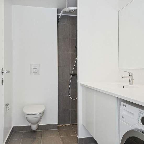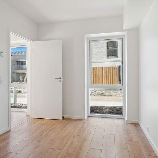Lejlighederne kommer med forskellige planløsninger. Nogle lejligheder har en lille entré, og i andre lejligheder træder man direkte ind i køkken-alrummet. Du får et godt og funktionelt indrettet badeværelse med separat bruseniche og vaskesøjle med kombineret vaskemaskine og tørretumbler. Alt afhængig af lejlighedens størrelse er der 1 til 3 separate værelser udover køkken-alrummet. Der er depotrum tilgængeligt i næsten alle lejemål bortset fra otte boliger, hvor depotrummet er udenfor lejemålet. Alle lejlighederne i stueetagen har egen terr...