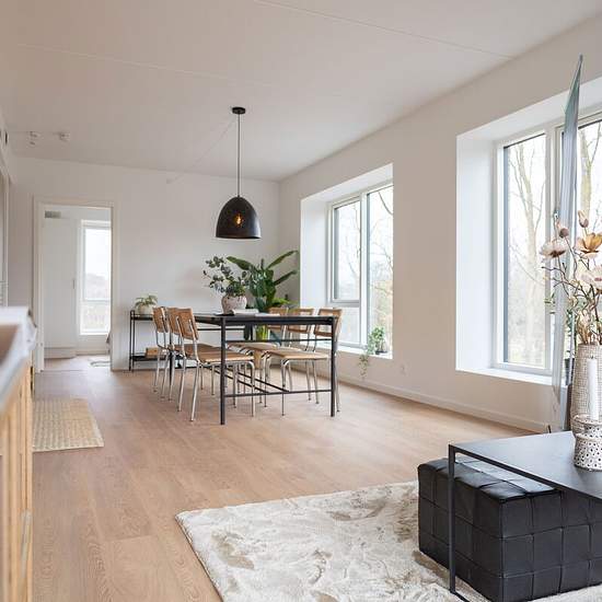 Det første Naboliv-projekt ligger smukt placeret i Birkerød, omgivet af skov, søer og et levende lokalmiljø. Her danner otte moderne punkthuse rammen om 110 boliger, der tilsammen udgør et harmonisk og imødekommende nabolag. Et multifunktionelt fælleshus, drivhus, legeplads og flere andre fællesfaciliteter skaber de bedste forudsætninger for, at fællesskabet kan spire og gro. De lyse boliger er indrettet i en elegant nordisk stil med kvalitetskøkkener fra Invita, praktiske laminatgulve samt indbyggede skabe og depotrum. Massive døre og stor...