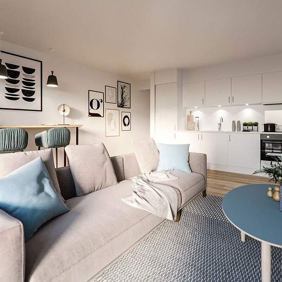 Lejeboligerne spænder fra 61–121 m², fordelt på 2-4 værelser og er moderne indrettet med fleksible planløsninger, åbne køkkenalrum og integrerede depotrum – typisk adskilt fra soveværelse — med fokus på funktionalitet, dagslys og hjemlig hygge. Høj kvalitet kendetegner boligerne: egetræslameller med gulvvarme i alle rum, køkkener fra HTH med Corian-bordplader, samt medhørende opvaskemaskine, vaskemaskine og tørretumbler. Alle boliger har enten privat altan eller adgang til fælles tagterrasse og grønne gårdrum. De store vinduespartier sikre...