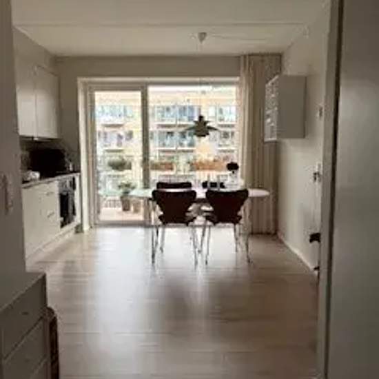 Denne 3-værelses lejlighed er indrettet med en dejlig stor entre, som er i åben forbindelse med spisekøkkenet. Fra spisekøkkenet er der adgang til den 6kvm store overdækket altan. I forbindelse med spisekøkkenet er der en hyggelig separat Tv-stue. Fra stuen er der adgang til 2 næsten lige store værelser, hvor der både er plads til en dobbeltseng og med plads til skabs arrangement. Lejligheden kommer med ALT i hårde hvidevarer fra. Indbygget ovn, induktionskogeplade, køle-fryseskab. På badeværelset er der en separat vaskemaskine og tørret...
