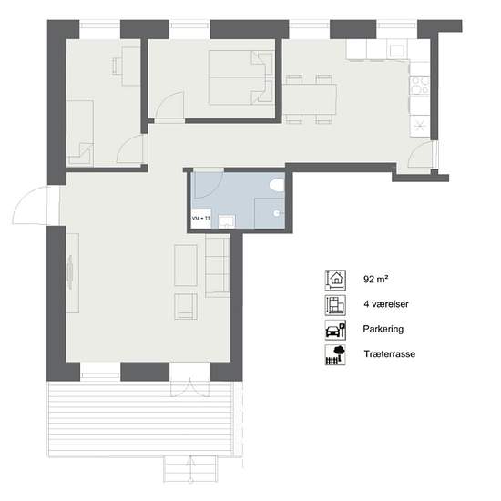 - 3 værelser