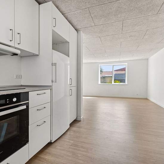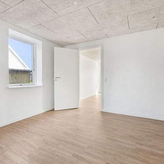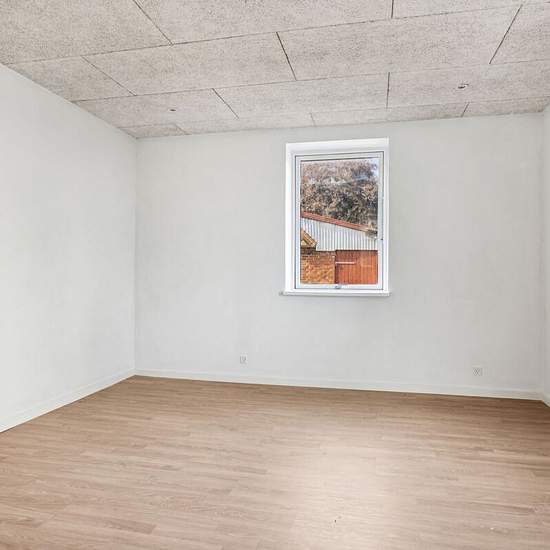 Stuelejlighed på 92 kvm, der er indrettet med entré, køkken åben til stor opholdsstue, stort soveværelse, lille værelse og badeværelse med bruseniche Endvidere garage, udhus og stor fælles have, som vedligeholdes af udlejer. Mulighed for tilleje af tidligere butikslokale med direkte adgang, og som kan anvendes til mange formål. Vand og varme afregnes a/c til udlejer. El direkte til elforsyning. Klar til indflytning nu.
