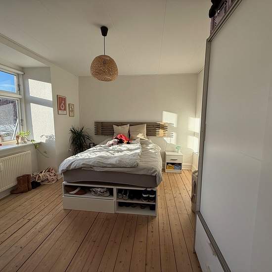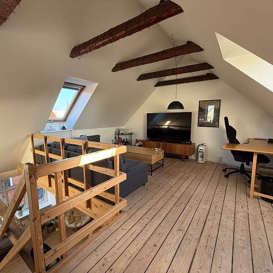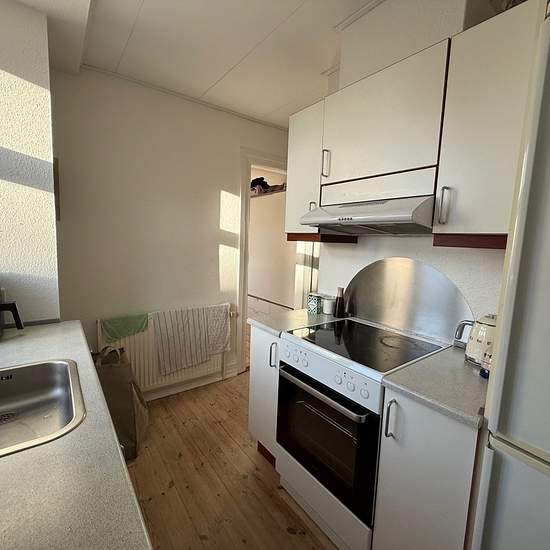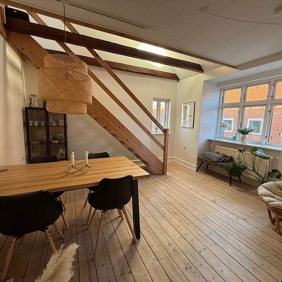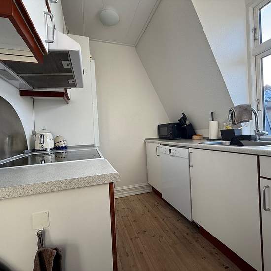 I Rimmensgade i Frederikshavn meget tæt på gågaden, finder vi denne fine lejlighed på 71 m2 med stue og soveværelse og hems. Lejligheden er meget centralt beliggende i en flot beboelsesejendom med vaskekælder og opbevaringsrum. Lejligheden indeholder: Mindre entre. God spisestue med vinduer ud til Rimmensgade og med trappe op til stor hems som pt. benyttes som stue. Pæn badeværelse med bruseniche. Køkken med komfur, emhætte, opvaskemaskine og køle- fryseskab. Godt stort soveværelse. Ingen husdyr tilladt Ingen rygning tilladt A conto pr. md...