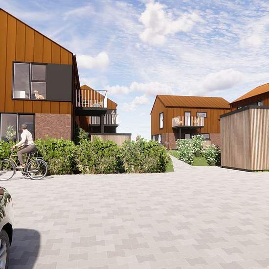 Lækre nye lejeboliger nær Give midtby Se mere på Parkvej Give På Parkvej i Give opføres i øjeblikket et nyt og indbydende lejlighedsprojekt, som kommer til at rumme i alt 12 lejligheder fordelt på to bygninger. Hver bygning indeholder seks lejligheder – tre i stueplan og tre på første sal – og ligger i et roligt område med stisystemer og grønne omgivelser, blot en kort gåtur fra Give bymidte. Lejlighederne varierer i størrelse fra ca. 95 til 108 kvadratmeter og udbydes som både tre- og fireværelses boliger, hvilket gør dem velegnede til bå...