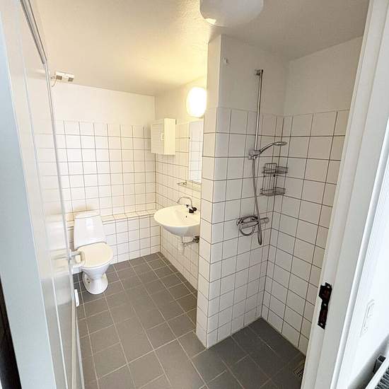 I denne ældre ejendom finder du en charmerende lejlighed med flotte gamle gulve og separat køkken. Ejendommen ligger næsten lige ved siden af Møllestrømmen og tæt på gågaden.