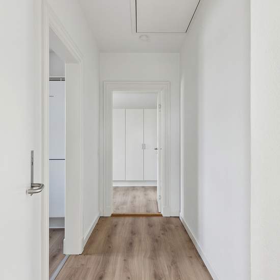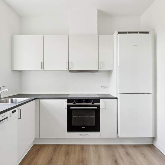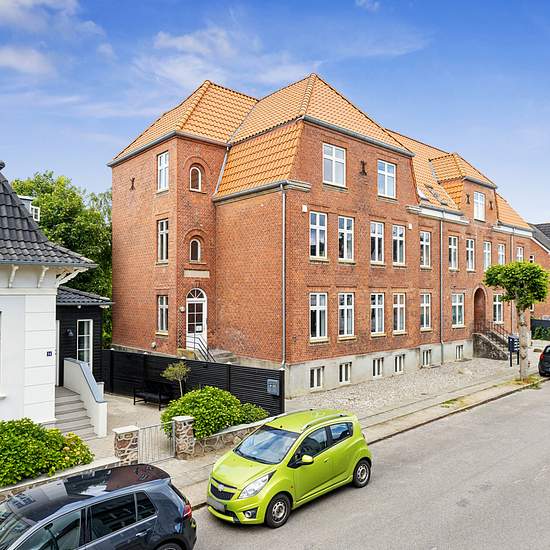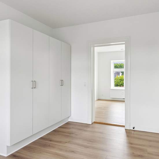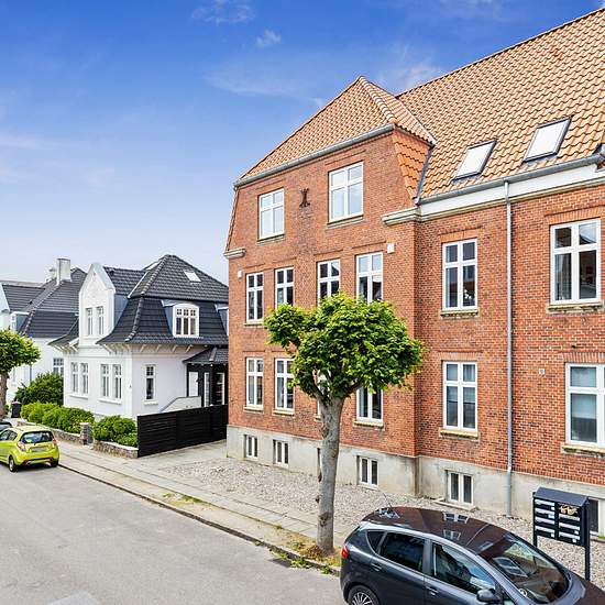 Dejlig nyere lejlighed med fælles have. Lejligheden består af entré/fordelergang, køkken med alt i hårde hvidevarer, hvidt flisebadeværelse, soveværelse med faste skabe, stue samt stue/værelse. Der er vaskeri i ejendommen og eget kælderrum.